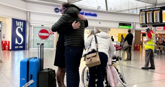 A családok átölelik egymást, megkönnyebbülve, hogy újra egyesültek az Egyesült Királyság területén (Kép: PA)