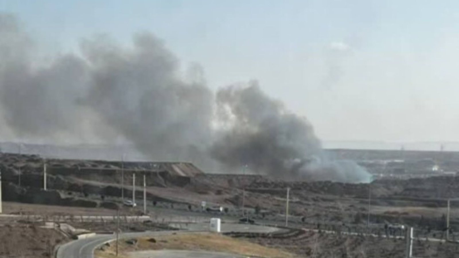 Füst gomolyog egy robbanásból a Teherán külvárosában található Parandban, és Irán-szerte több robbanásról számoltak be. Hitel: Ismeretlen Banda Abbasban egy összedőlt toronyházat egy újabb robbanás semmisít meg.