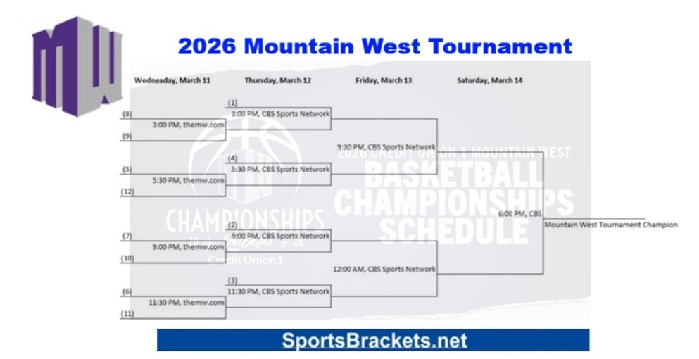 Íme a 2026-os Mountain West Tournament menetrendje. Idén a férfiak menetrendje a nőkét követi. Itt megtekintheti a többi főiskolai kosárlabda torna zárójelét is.