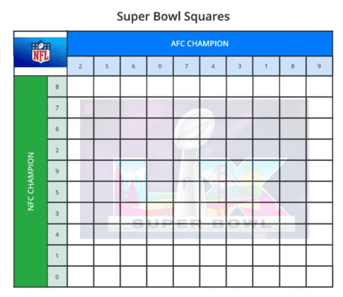 A Super Bowl Squares 2026 játéka: lépésről lépésre történő beállítás, véletlen számok, szabályok és kifizetési ötletek a Super Bowl LX-hez (Patriots vs Seahawks)