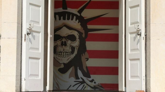Kép: Amerika-ellenes falfestmény az Egyesült Államok egykori teheráni nagykövetségén. Fotó: Reuters