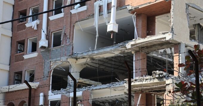 Egy bérházat láttak robbanás után Irán déli kikötővárosában, Bandar Abbászban 2026. január 31-én. Amirhossein Khorgui/ISNA az AP-n keresztül