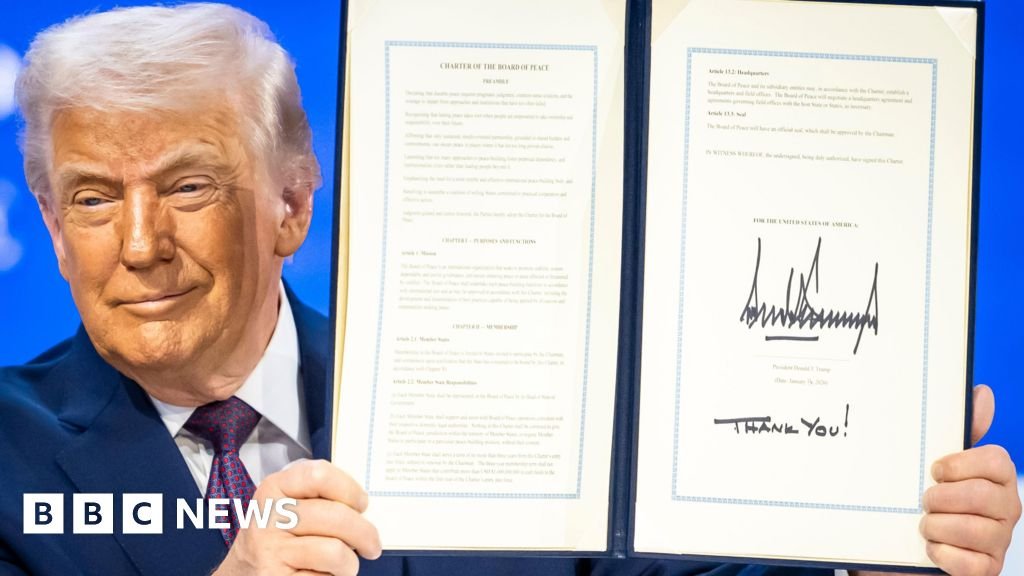 A világ vezetőivel Davosban tartott aláírási ceremónián elindítva az igazgatótanácsot Trump kijelentette, hogy nem az Egyesült Nemzetek Szervezetének helyettesítésére szánja, és kifejezte meggyőződését, hogy hozzájárul a „tartós” béke megteremtéséhez a Közel-Keleten.