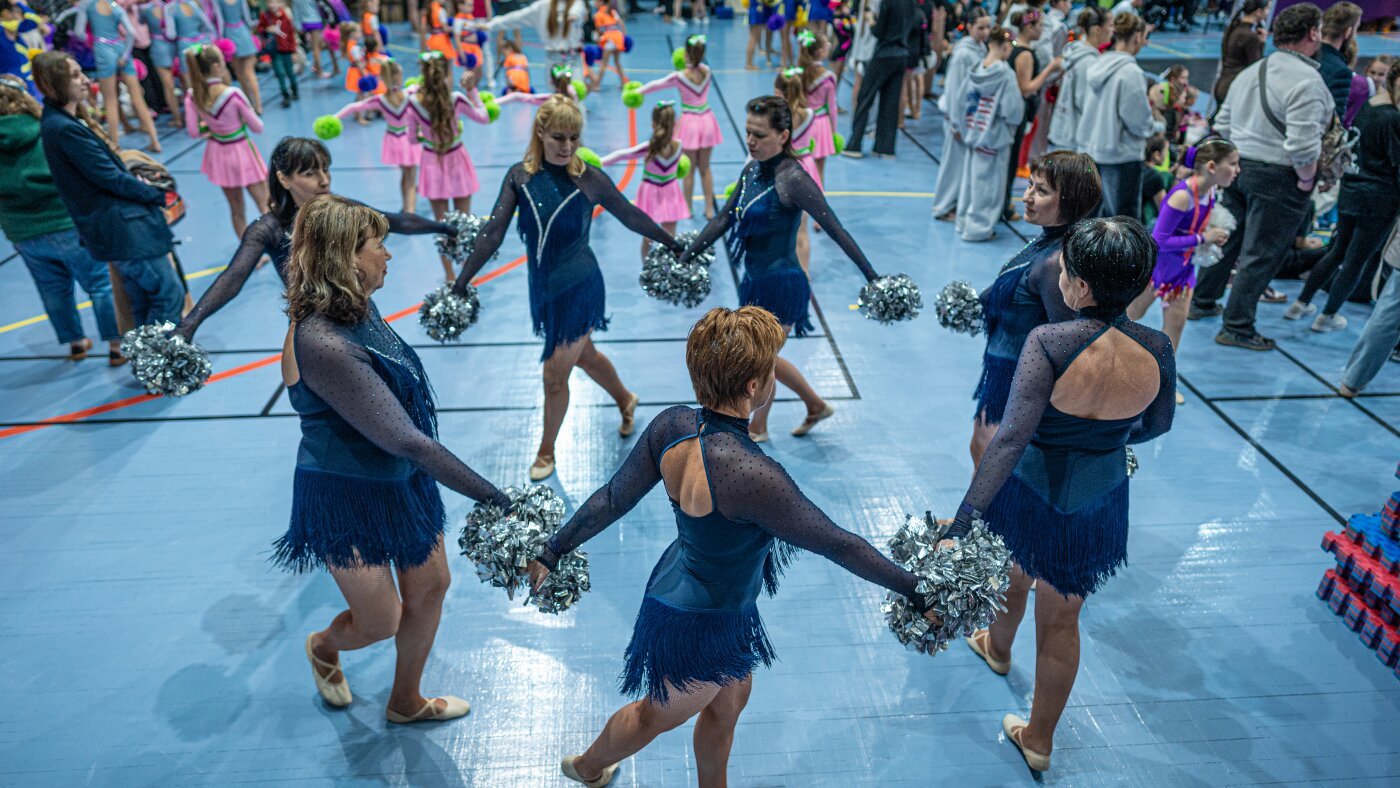 Amikor a 63 éves könyvelő, Halina Plakhuta csatlakozott a Sunrise pompomlány csapatához, fájt a keze, és remegett a térde. A háború alatt főállású gondozónő volt, és fizikailag törékennyé vált. „Most olyan magasra ugrok, hogy az unokám lenyűgözi” – mondja. Anton Shtuka az NPR számára Felirat elrejtése